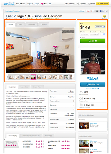 上圖是Airbnb的租房信息detail頁面,租客在租房時最關心的信息為:房間實景、價格、房東的信息;看它的detail信息,也存在很多種類型,但用戶最關心的三類信息因為位置、占用的面積大小讓租客一眼就能掌握房子的基本信息,如有興趣再繼續看更多詳情。