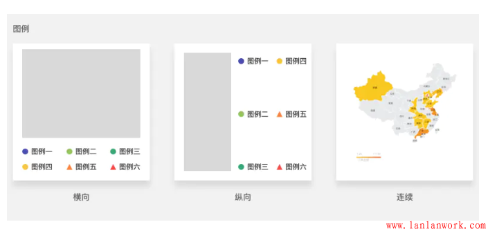 5.圖例。離散型數(shù)據(jù)包括橫向排列和縱向排列,連續(xù)型數(shù)據(jù)包括連續(xù)圖例。