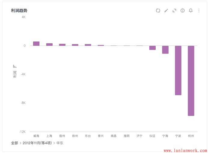 3.數(shù)據(jù)鉆取。單擊某個數(shù)據(jù)可以看到該數(shù)據(jù)的詳細信息,變換分析的粒度。