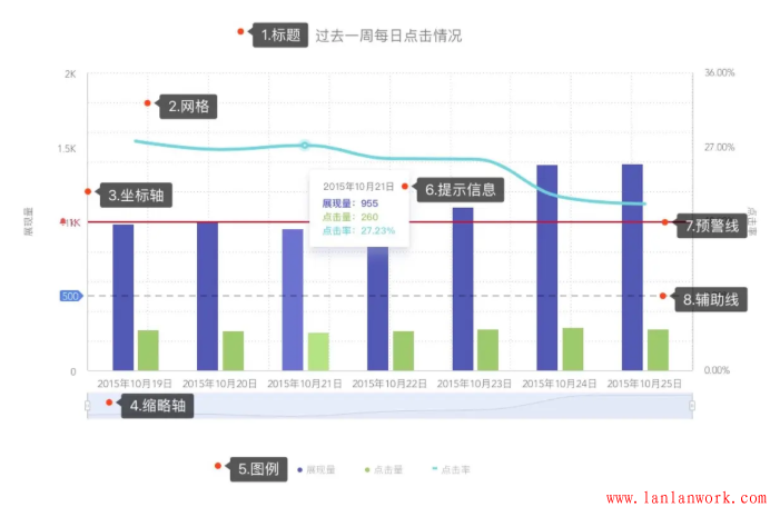 數(shù)據(jù)產(chǎn)品不要試圖去掩蓋問題,而要反映真實數(shù)據(jù),暴露問題,并且和用戶一同解決。比如對數(shù)據(jù)閾值進行監(jiān)測,預(yù)警線就是很友好的可視化方式。