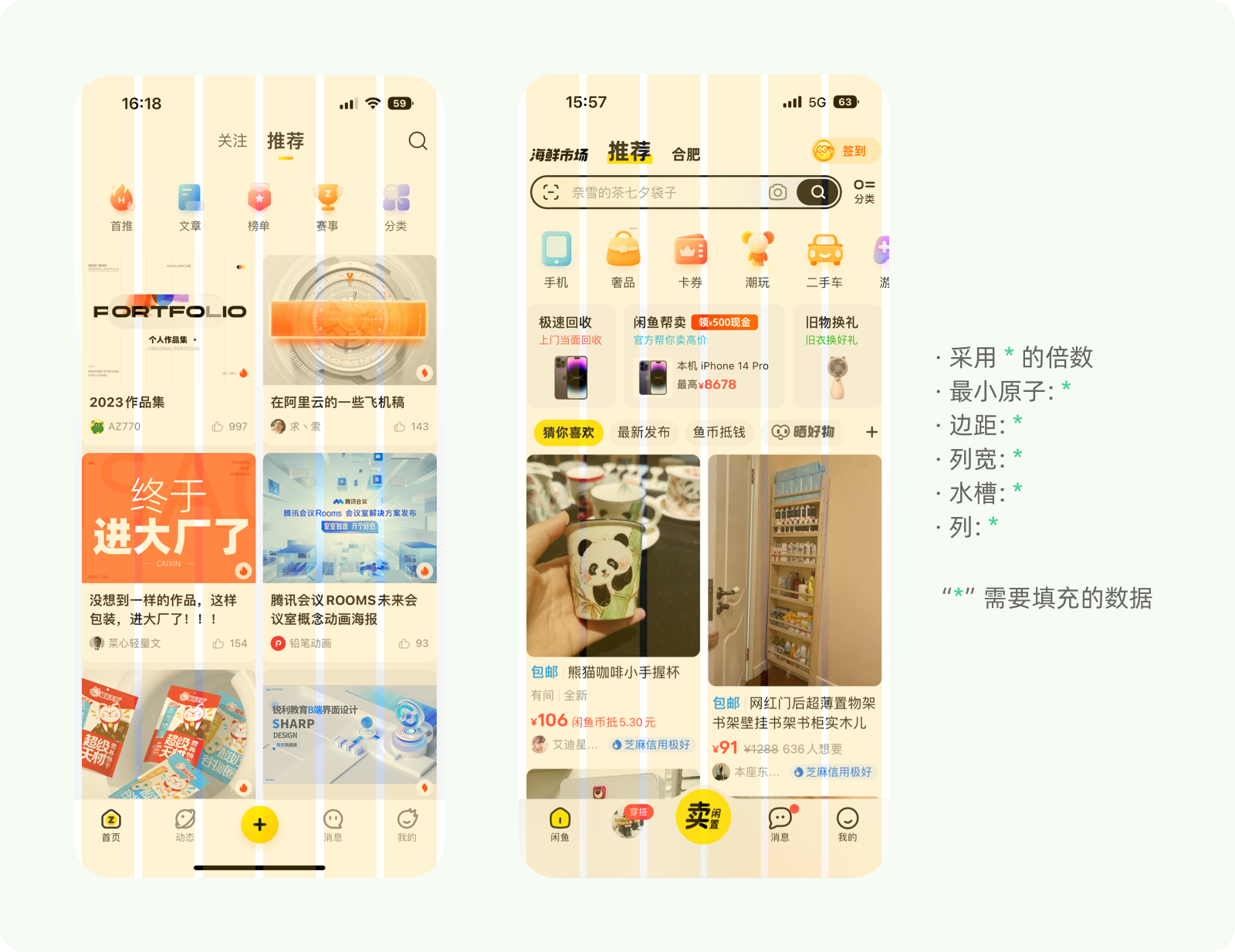 柵格的規則定義了一套底層的、統一的測量單位,當設計團隊內對此達成共識時,可以避免因屏幕適配、比例換算產生的像素偏移,適配多種屏幕,提升設計稿件中元素屬性的一致性和規范化。