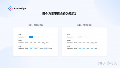 以我們開篇第四個問題提到的組件「平鋪式多選器」為例,我們到底該選哪個方案作為規范納入設計系統當中呢?