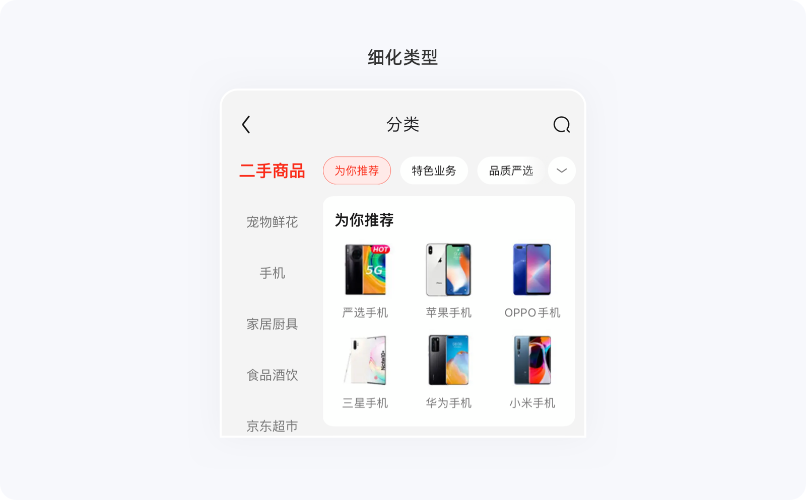 這里最為典型的例子就是電商平臺(tái)的分類,它通過(guò)一級(jí)、二級(jí)、甚至三級(jí)分類將商品所涉及到的類型合理的控制在有效范圍內(nèi),這些選項(xiàng)被分類/分組之后,關(guān)鍵信息得到強(qiáng)化,能輔助用戶快速作出決策。還有后面的二次篩選功能,幫助用戶進(jìn)一步縮小范圍,選擇效率明顯會(huì)更高。當(dāng)然,這不僅僅是依靠希克定律,還得結(jié)合運(yùn)營(yíng)需求、用戶數(shù)據(jù)等因素進(jìn)行合理化分類。