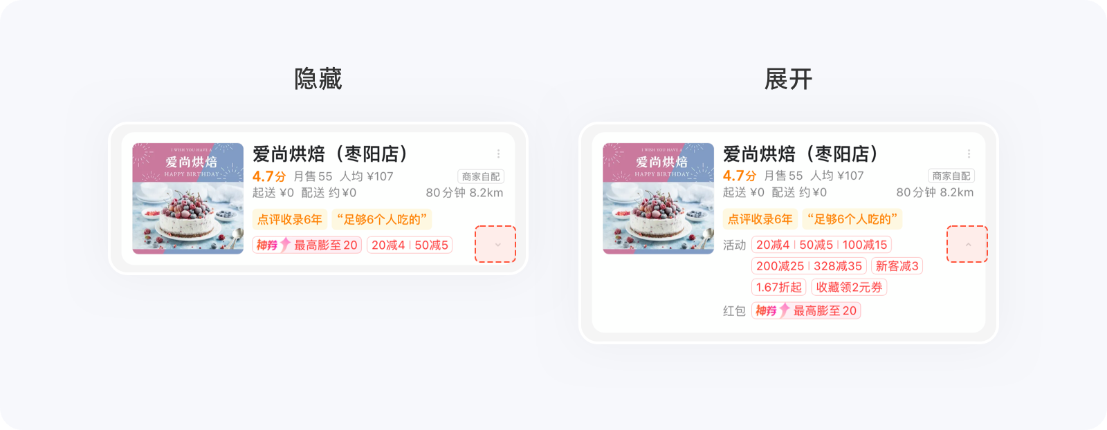 與刪除不同的是,隱藏并沒有刪減選項(xiàng)的數(shù)量,只展示部分常用、高頻的選項(xiàng),去除其他信息的干擾,方便用戶快速做出決策,而將其他不常用、低頻選項(xiàng)隱藏起來(lái),在需要時(shí)系統(tǒng)自動(dòng)展示、或用戶手動(dòng)喚出。其實(shí),不管是交互四策略中的隱藏、還是希克定律中的隱藏,其作用都是通過(guò)暫時(shí)性地減少信息數(shù)量來(lái)提升用戶操作效率。