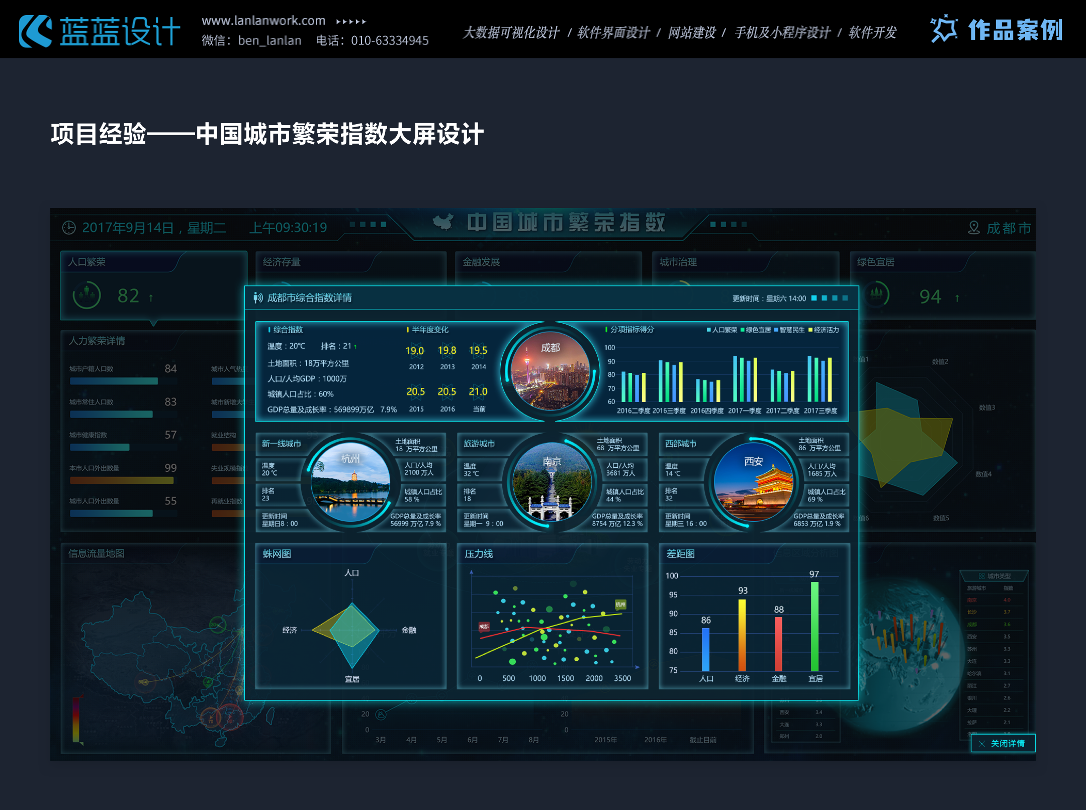在當今信息化高速發展的時代,大屏界面設計已成為企業展示、數據分析、實時監控及信息可視化等領域不可或缺的一環。它不僅關乎視覺的震撼與美觀,更承載著信息高效傳遞、用戶體驗優化以及決策支持等重要功能。大屏界面設計涉及多個方面,以下將從布局規劃、視覺設計、交互邏輯、數據可視化及技術支持五個維度進行詳細探討。