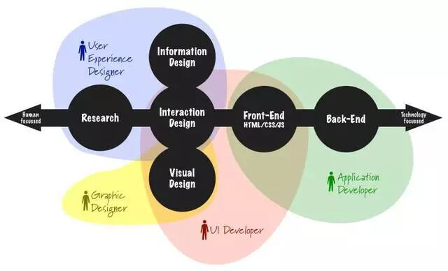 圖五:從工作職責來解釋差異, UX的范圍很廣,很少人可以精通全部,可以說幾乎沒有。