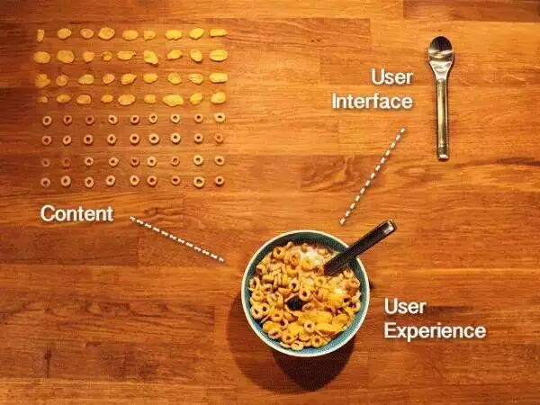 圖十:UI是用來取內容的工具,使用者使用UI吃完東西(內容)的體驗是UX。