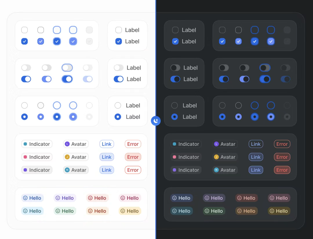 在桌面端設計中,大圓角應用需考慮屏幕尺寸差異。Windows 11 的窗口采用 28px 圓角,在大尺寸顯示器上營造輕盈懸浮感;而設計軟件 Figma 的工具欄按鈕則采用適中圓角,避免過度圓潤導致的操作辨識度下降。此外,大圓角還可與陰影、漸變結合增強層次感,如蘋果 macOS 的控制中心,通過 24px 圓角與柔和陰影,打造出符合物理直覺的 “半透明毛玻璃” 效果。