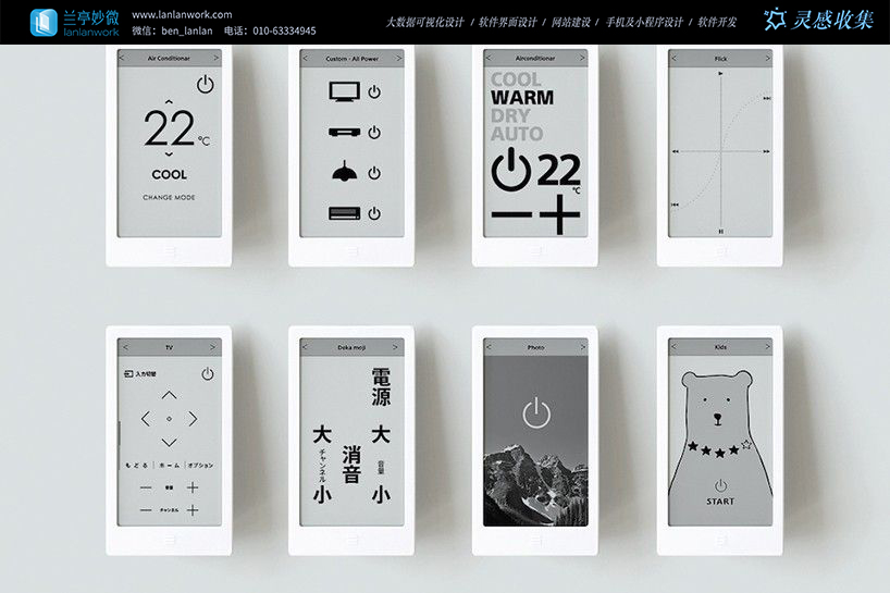 1. 異形面板 + 裝飾化界面(如時鐘 / 溫度嵌入);2. 啞光涂層 + 同色系配色,弱化設備感;3. 場景模式替代多按鍵,操作元素少