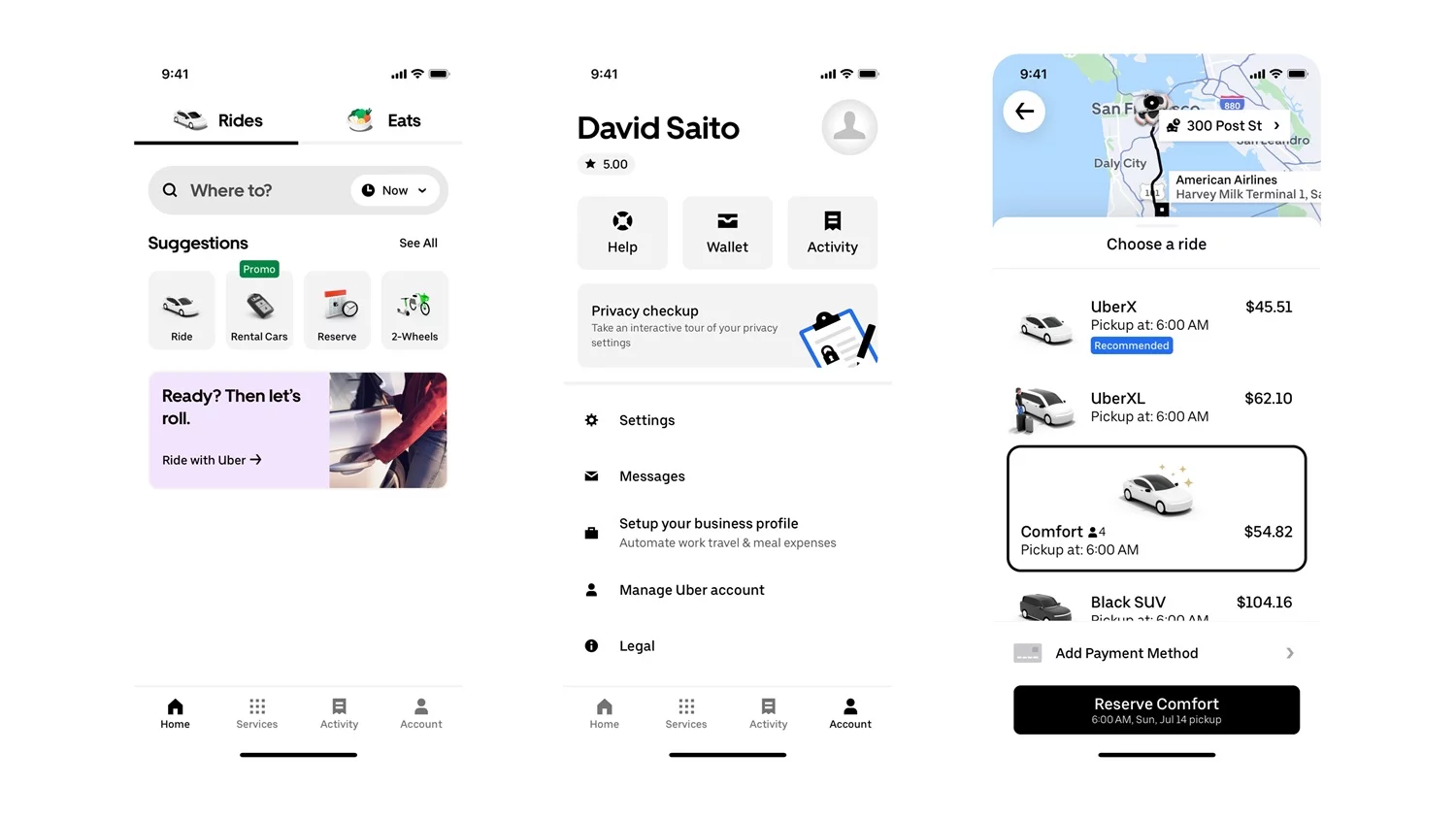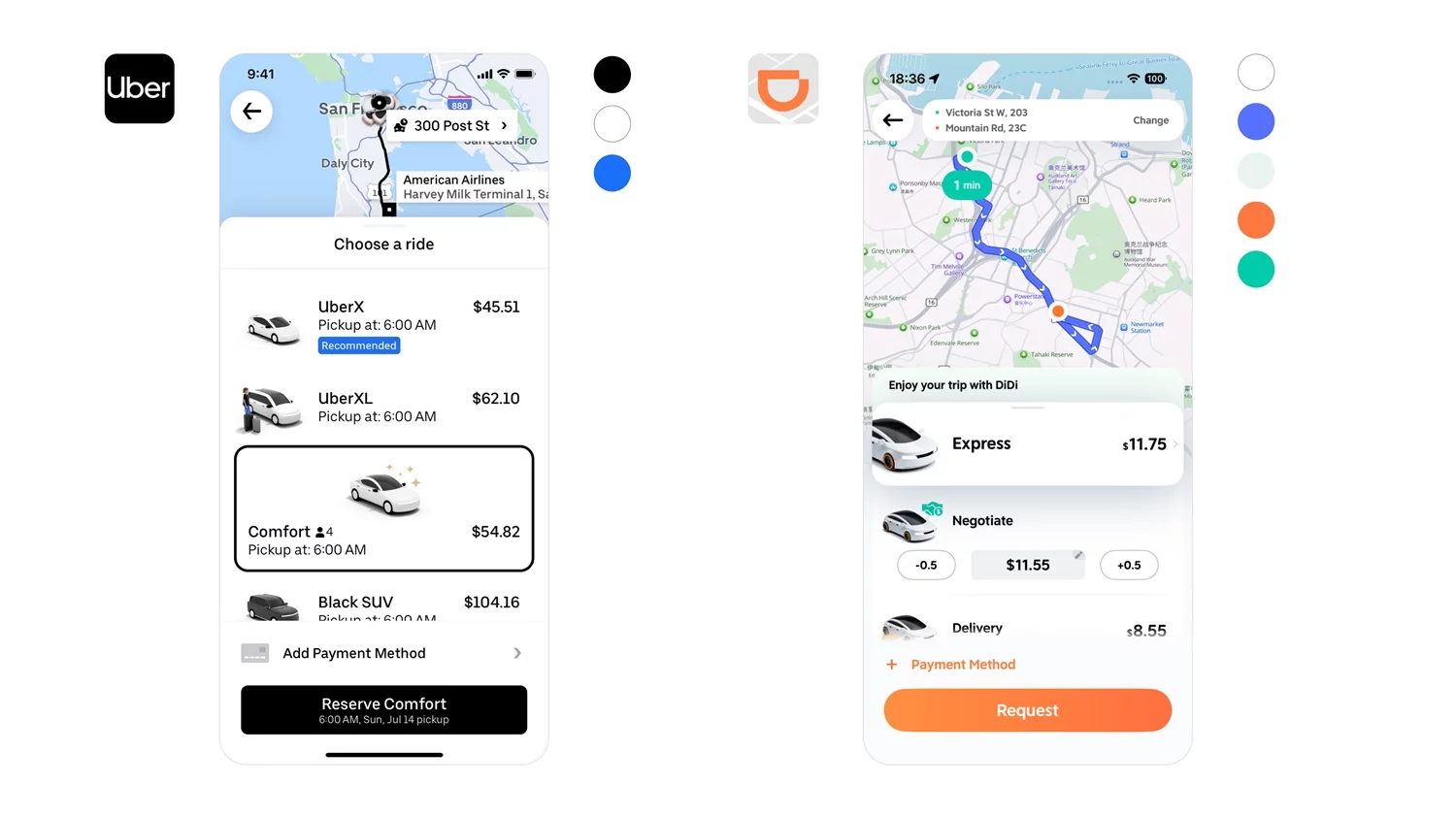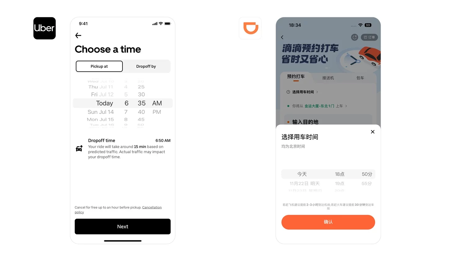 海外更注重“功能性審美”——Uber 的黑白配色、簡潔排版,本質是“為功能服務的審美”,讓用戶專注于操作而非視覺裝飾。