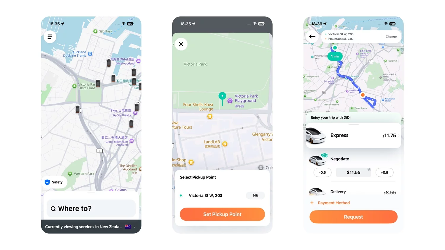 滴滴國際版同樣遵循這一邏輯,功能分區(qū)明確,留白充足,用戶無需在復雜布局中費力尋找關鍵入口。