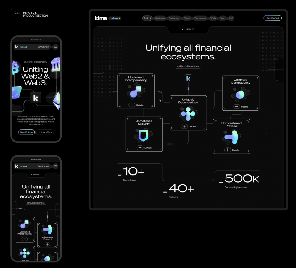 Kima Network 的設(shè)計(jì)完美詮釋了科技類產(chǎn)品的設(shè)計(jì)核心:用視覺語言傳遞專業(yè)感,用信息架構(gòu)降低理解成本,用品牌符號(hào)建立用戶認(rèn)知。
