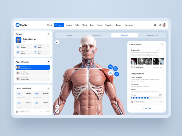 • 設計邏輯:聚焦醫療專業場景(如影像診斷、醫護決策),通過多視圖對比、精準標注工具、模塊化數據面板,滿足醫護人員對醫療信息的深度分析與快速決策需求,突出專業、高效的使用體驗。
