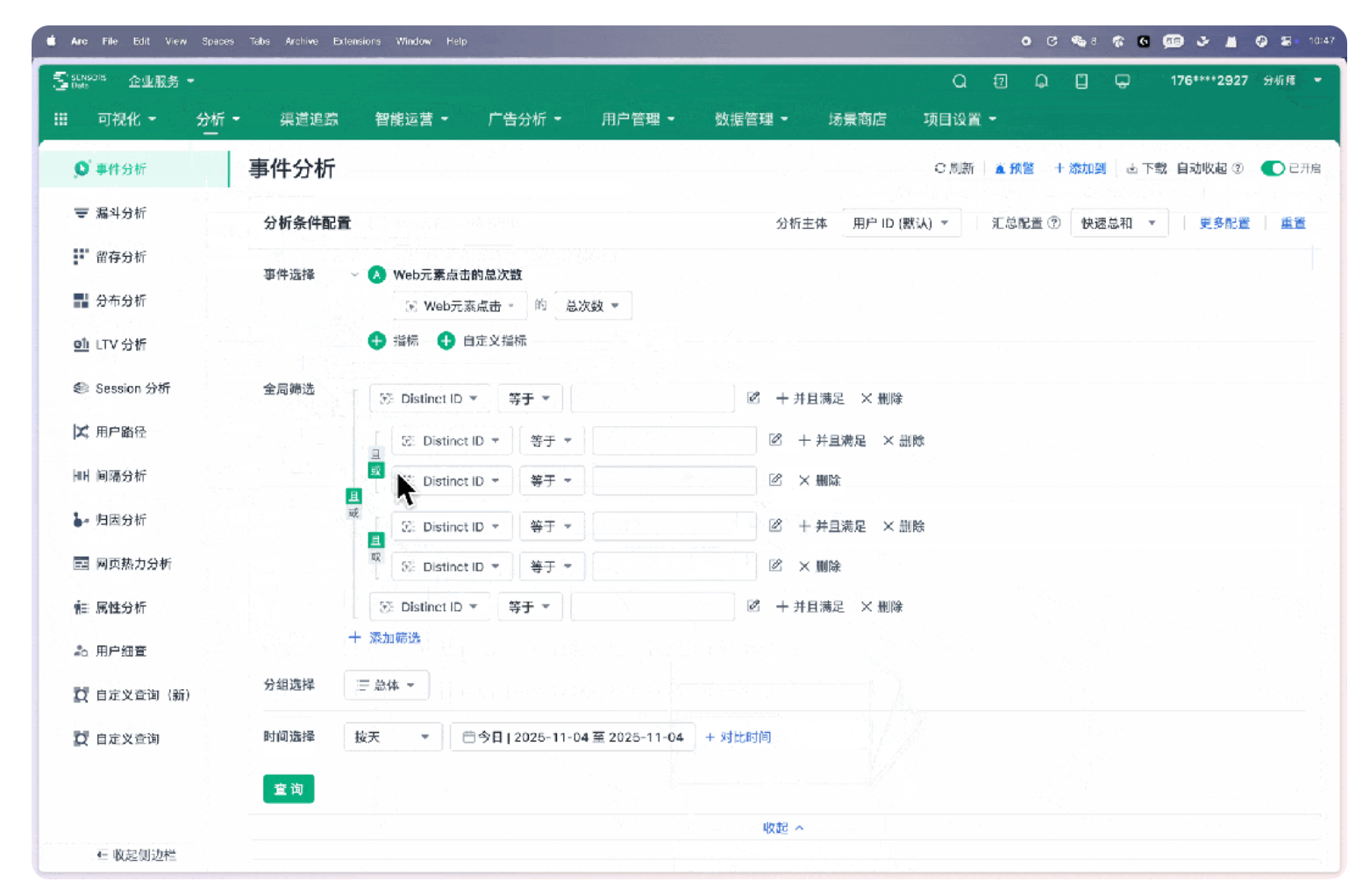 或就是這些條件滿足任意一個就能出結果,比如還是電商數據,需要尋找對產品有興趣的潛在客戶,就需要篩選「近 90 天內有過人工咨詢記錄、近 30 天內訪問產品詳情頁≥6 次、近 180 天內提交過試用申請」,三個條件滿足任意一個,這樣就能涵蓋更為全面。