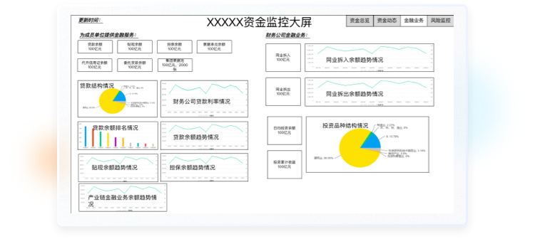 右側(cè)是客戶給的原型,只是把要展示的數(shù)據(jù)簡單羅列了一下??紤]到大屏應(yīng)用場景,比如公司會議,集團視察,行業(yè)參觀等,都是宏觀數(shù)據(jù)展示為主。所以在設(shè)計時不僅要考慮美觀性,更要考慮到整體的交互布局以及交互方式,確保關(guān)鍵數(shù)據(jù)和指標(biāo)在界面上以醒目的方式呈現(xiàn),以便用戶快速識別和理解。設(shè)計清晰簡潔的布局,避免信息過載,使用戶能夠輕松找到需要的信息。