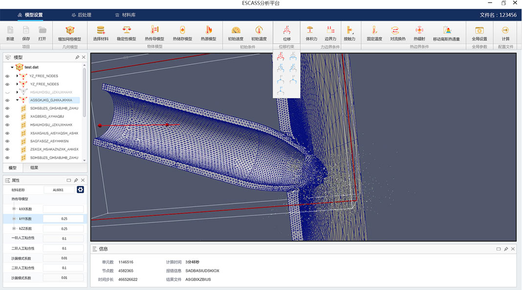 ESCAAS?是一款可用于航空、航天、兵器、國防、核工業、電子、船舶、高鐵、汽車、生物力學、教育科研等各種領域的極限力學問題的軟件。ESCAAS?以嚴格的數學理論與計算數學方法為基礎,以先進的計算機科學與軟件技術為工具,采用基于物理現象本質與各種工程材料熱力學響應及失效機 理的本構模型,實現對產品在逼近設計極限工作環境下性能的高精度預測。